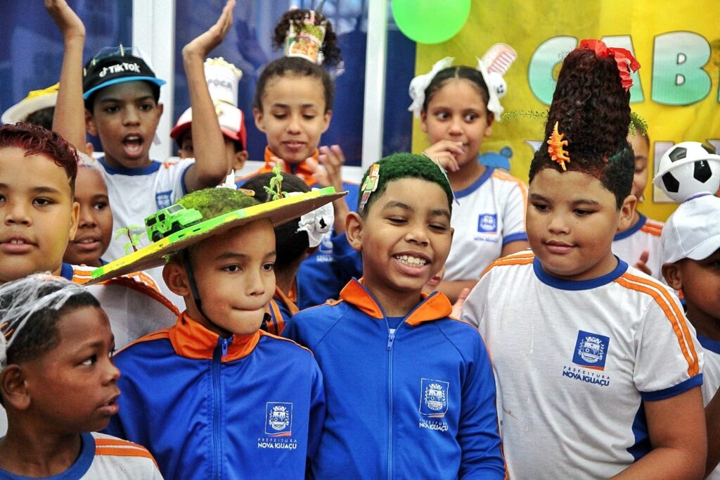 A criatividade tomou conta dos alunos das escolas municipais de Nova Iguaçu durante a Semana da Criança. Na Escola Municipal Professora Izabel dos Santos Soares de Mello, no bairro Caonze, a imaginação se transformou em penteados inusitados nesta quarta-feira (08/10). Teve vulcão, pipoca, boneca, laço e até campo de futebol nas cabeças dos estudantes. A unidade deu início à programação com o tradicional Dia do Cabelo Maluco, uma das atividades mais aguardadas do ano pelos pequenos.