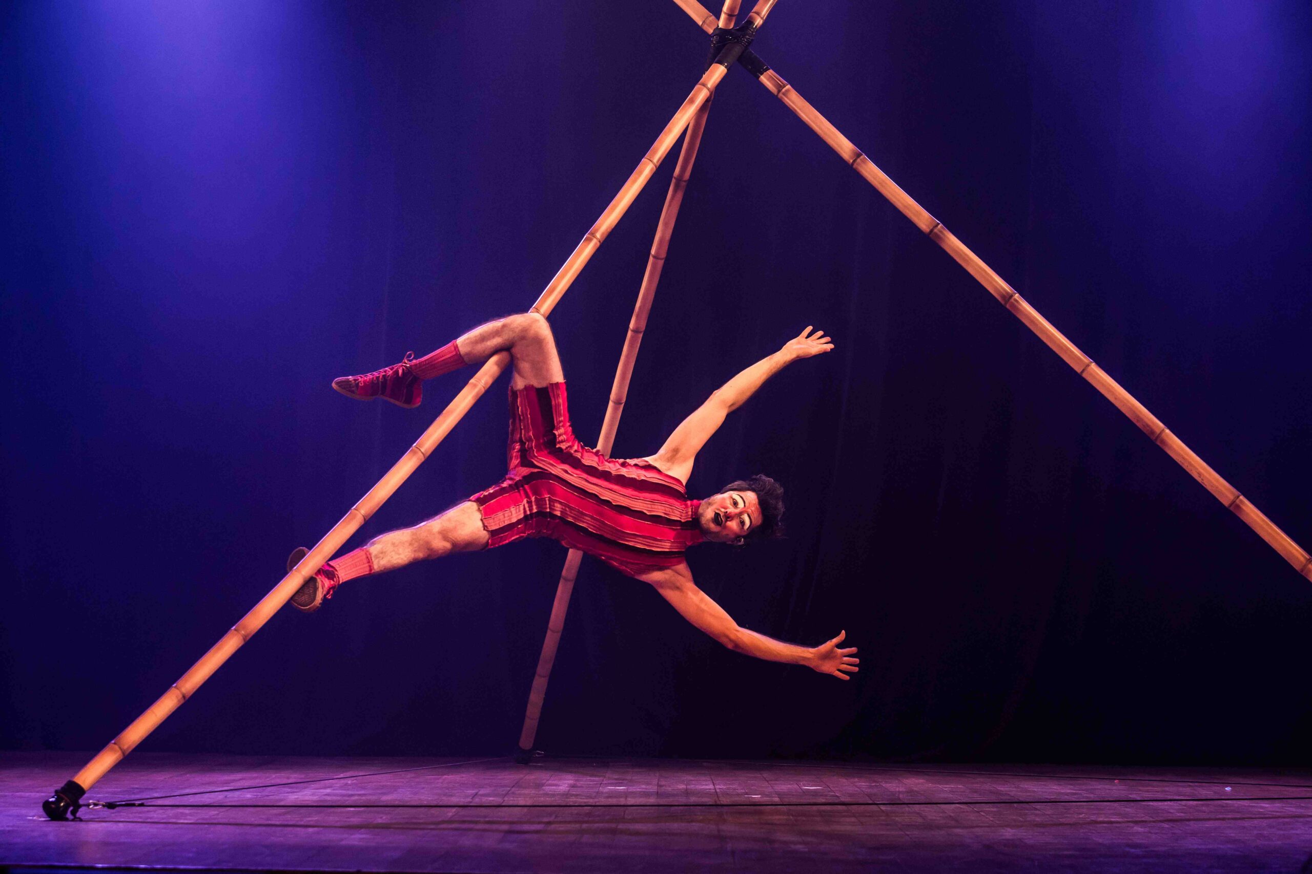 Entre proezas físicas e trapalhadas, Ricardo Gadelha radicaliza sua pesquisa em comicidade não verbal e mescla a palhaçaria às acrobacias feitas em varas de bambu gigantescas. O palhaço VARETA se lança numa jornada de descobertas, manipulando um tripé de bambu de diversas formas, até descobrir as possibilidades acrobáticas do imenso instrumento. Se na infância, Ricardo buscava formas divertidas de lidar com os apelidos que expunham sua magreza, como “fiapo”; ”magrelo” e ”lagartixa”, neste divertido show de proezas físicas e trapalhadas, o artista investe na comunicação não verbal para buscar respostas à seguinte pergunta: “Como o corpo errante e não atlético do palhaço pode alcançar alguma virtuose da técnica acrobática e ainda produzir beleza e encantamento?”