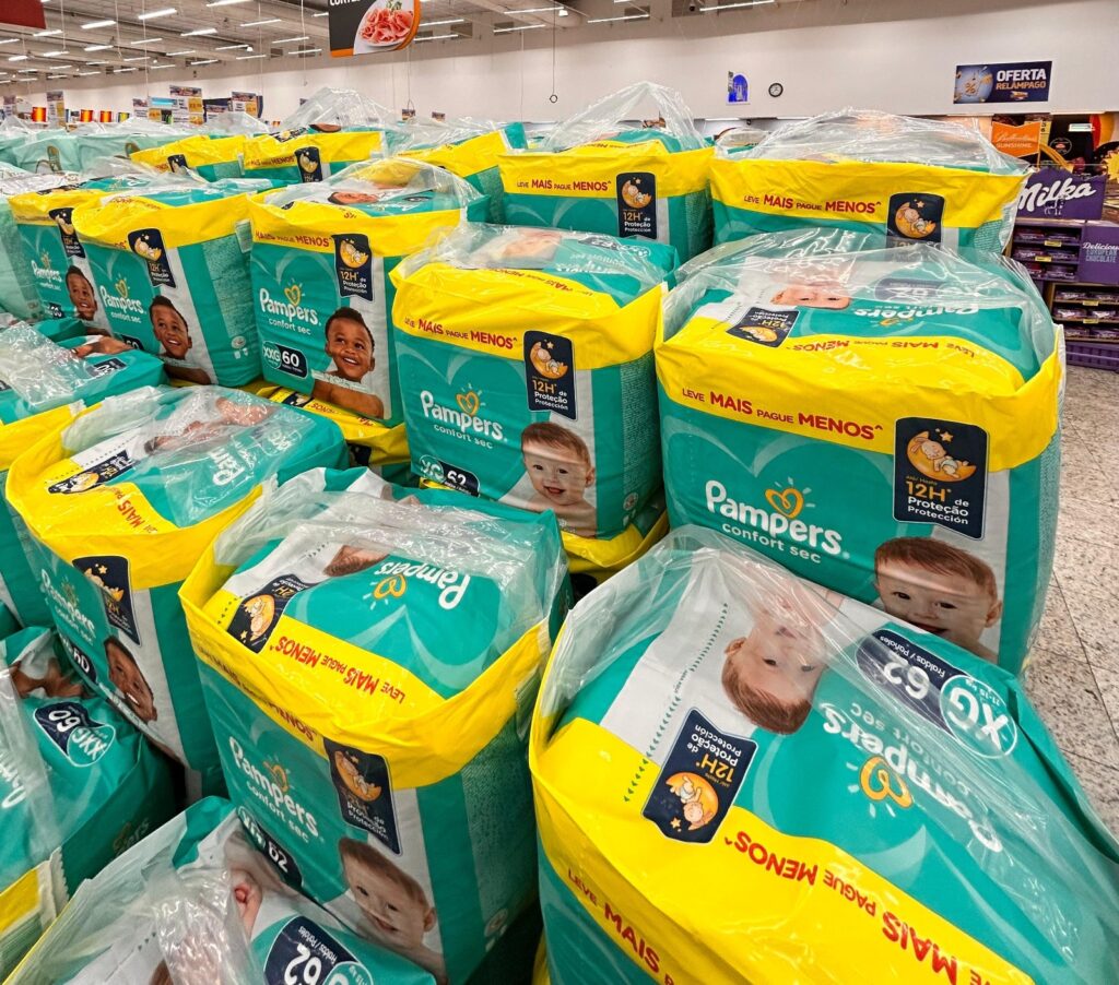 • 15 milhões de pacotes de fraldas descartáveis
