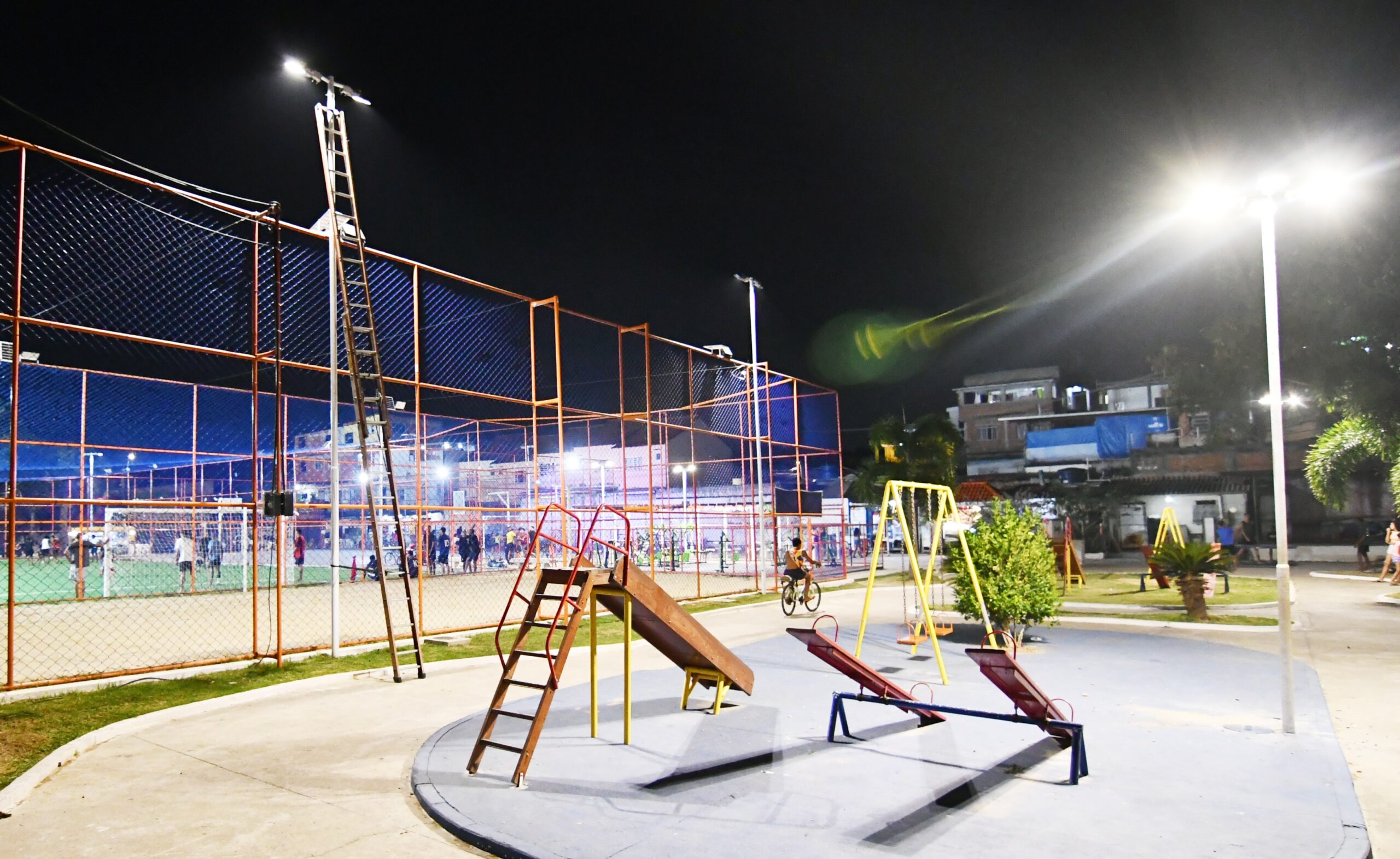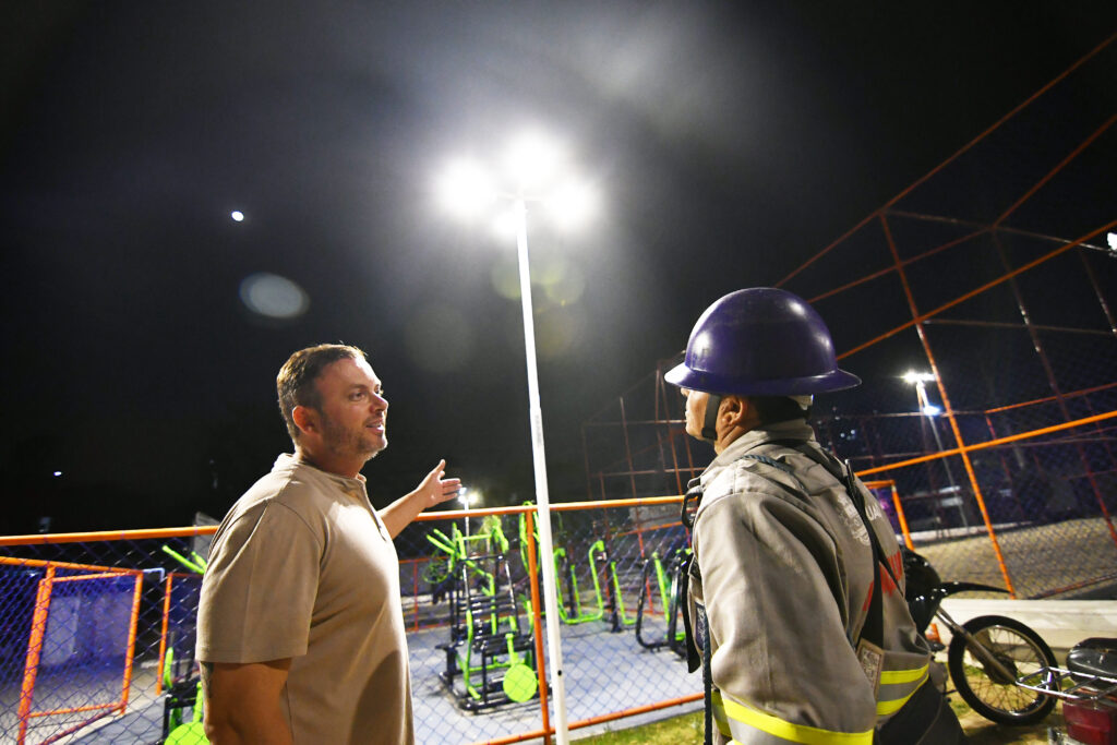 “Trocamos todas as lâmpadas por LED. Esta mudança ajuda a reduzir o custo da iluminação pública e deixa a praça muito mais iluminada, com iluminações específicas para os campos, para a quadra e todo o entorno, explica Rodrigo Gatto, subsecretário de Iluminação Pública de Nova Iguaçu.