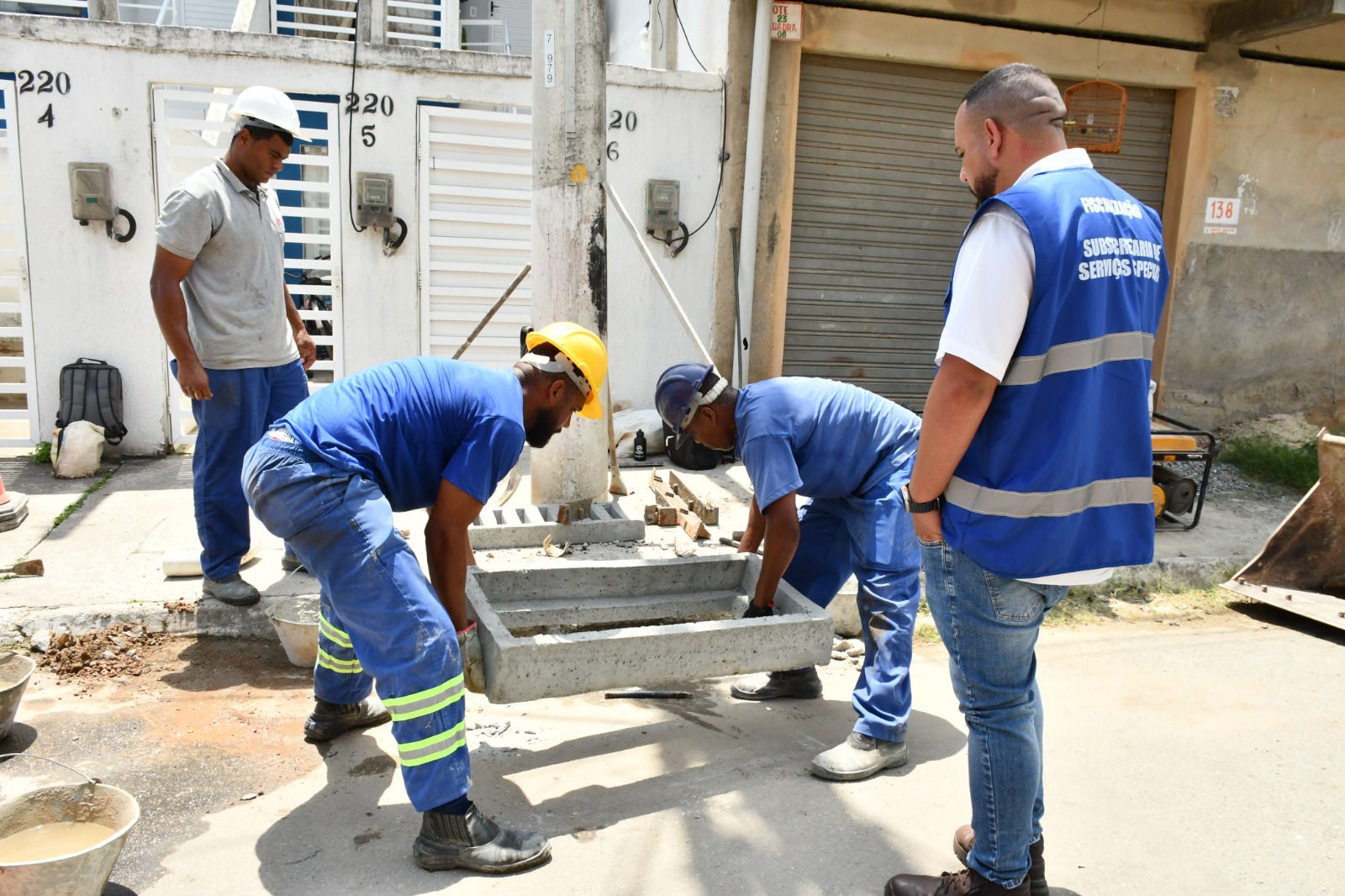 “É um trabalho complexo. As peças de concreto têm outro tamanho, então a equipe precisa cortar o piso, escavar, limpar e desobstruir o bueiro. É um serviço demorado e caro. Além disso, um bueiro aberto por causa de furto pode causar acidentes graves, principalmente com crianças e idosos. A troca para as peças de concreto deve reduzir drasticamente os furtos”, explicou a arquiteta da Prefeitura de Nova Iguaçu, Carla Neves.
